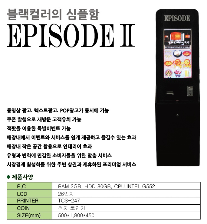 오늘은 불스아이 머신과 함께 매장에 임대되고 있는 이벤트기기 '에피소드'를 알려드리려구요 ^^