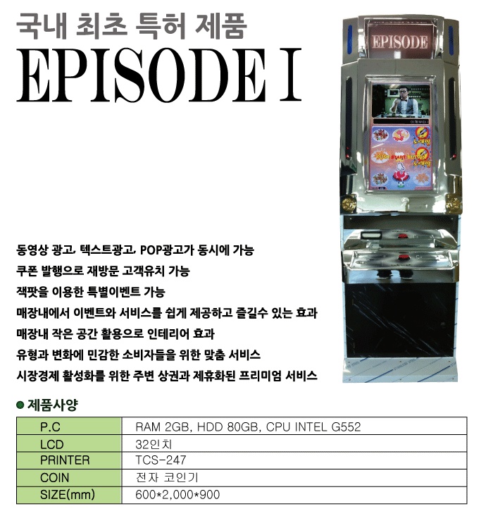 Episode는 매장에서 정해진 이상의 매상을 올려주신 손님들에게 이벤트기기를 사용하실 수 있는